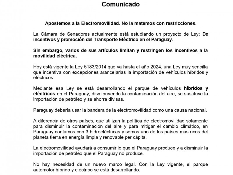 APOSTEMOS A LA ELECROMOVILIDAD. NO LA MATEMOS CON RESTRICCIONES